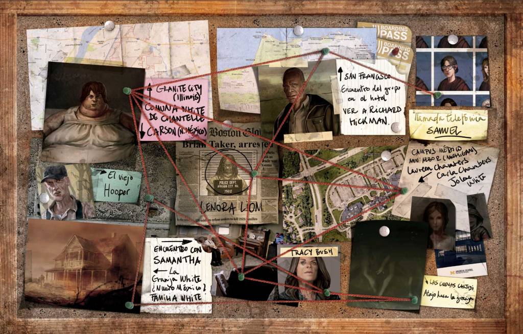 Se conceptualizaron más de cincuenta personajes para Fundido en blanco, incluyendo a la familia White, criaturas, extras y secundarios. Cada uno tiene sus estadísticas de juego y motivaciones personales.