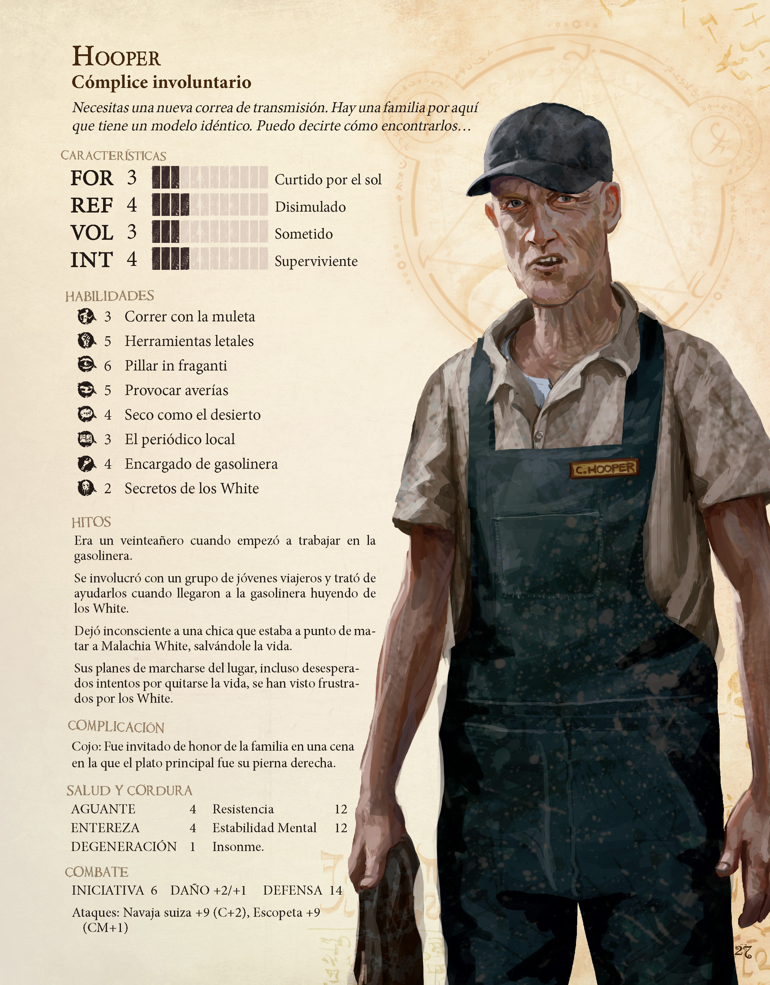 El libro se divide en dos partes: en la primera se describe al detalle la inquietante y endogámica secta familiar de los White, su red de parientes y los extraños dones concedidos por el Ser del Pozo, entre otros datos de utilidad para los directores de juego. La segunda parte incluye tres aventuras que involucrarán a los personajes jugadores, a su pesar, en las macabras actividades de la familia caníbal.